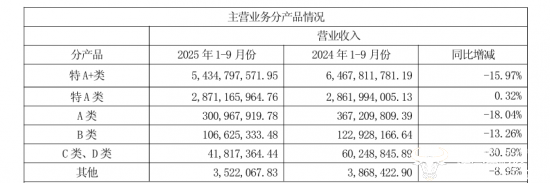 其中公司特A類產(chǎn)品前三季度收入為28.71億元,量相同比增長0.32%,今世近是公司前三季度唯一增長的品類,而公司的核心業(yè)務特A+類產(chǎn)品前三季度營業(yè)收入為54.35億元,同比下降了15.97%。